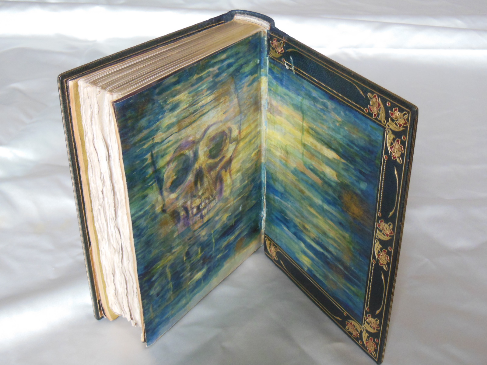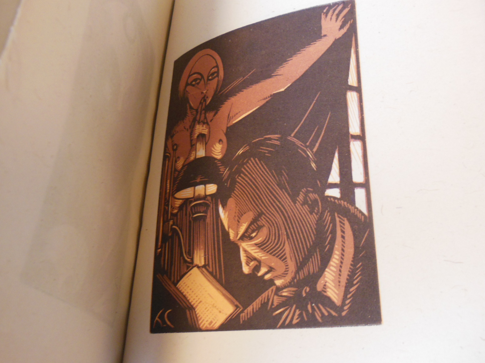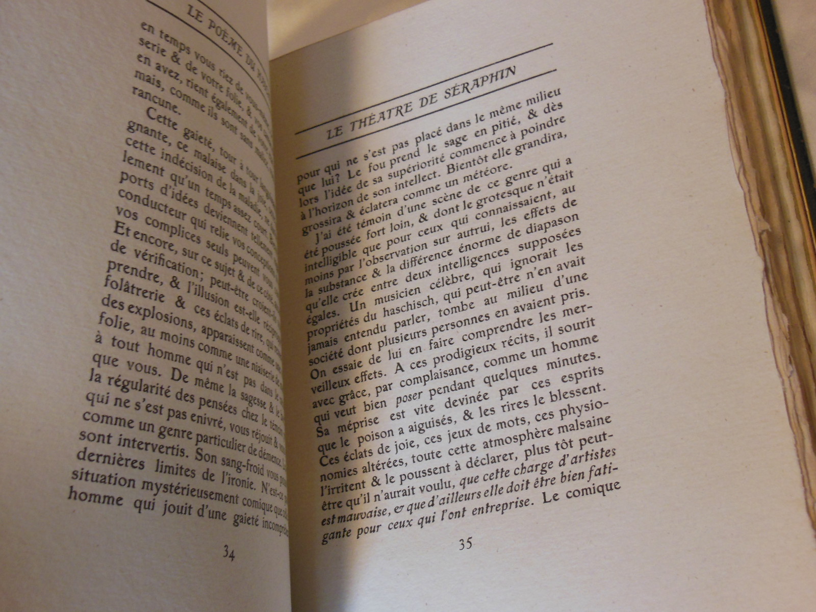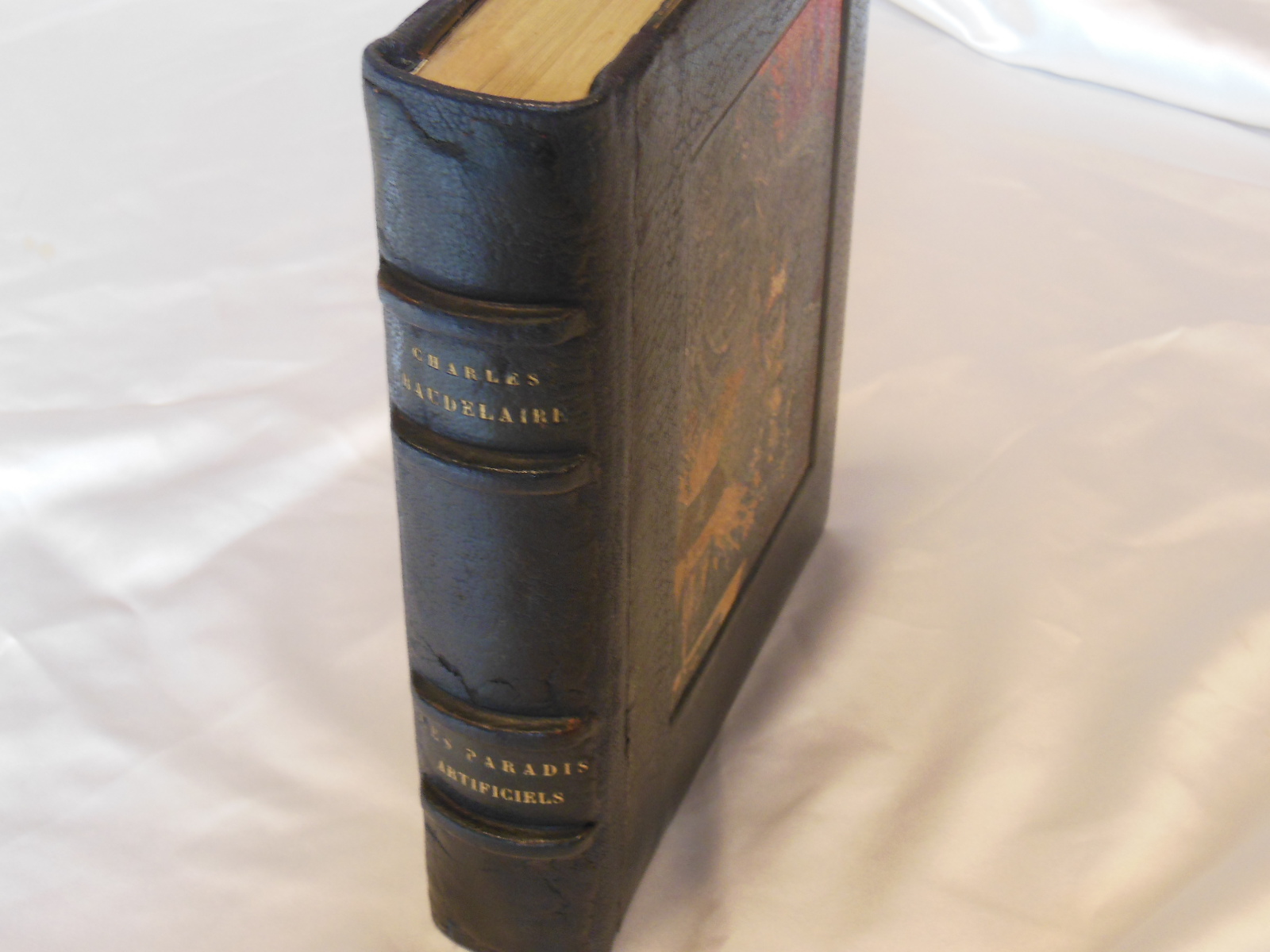 Illustrierte Ausgabe von Baudelaires Paradis Artificiels, einem Essay von 1860, in dem der Dichter die Beziehung zwischen Drogen und poetischem Schaffen diskutiert. Sehr schöne Art-Déco-Holzstiche von Henry Chapront mit schwarzen Ornamenten im Text und farbigen Tafeln.