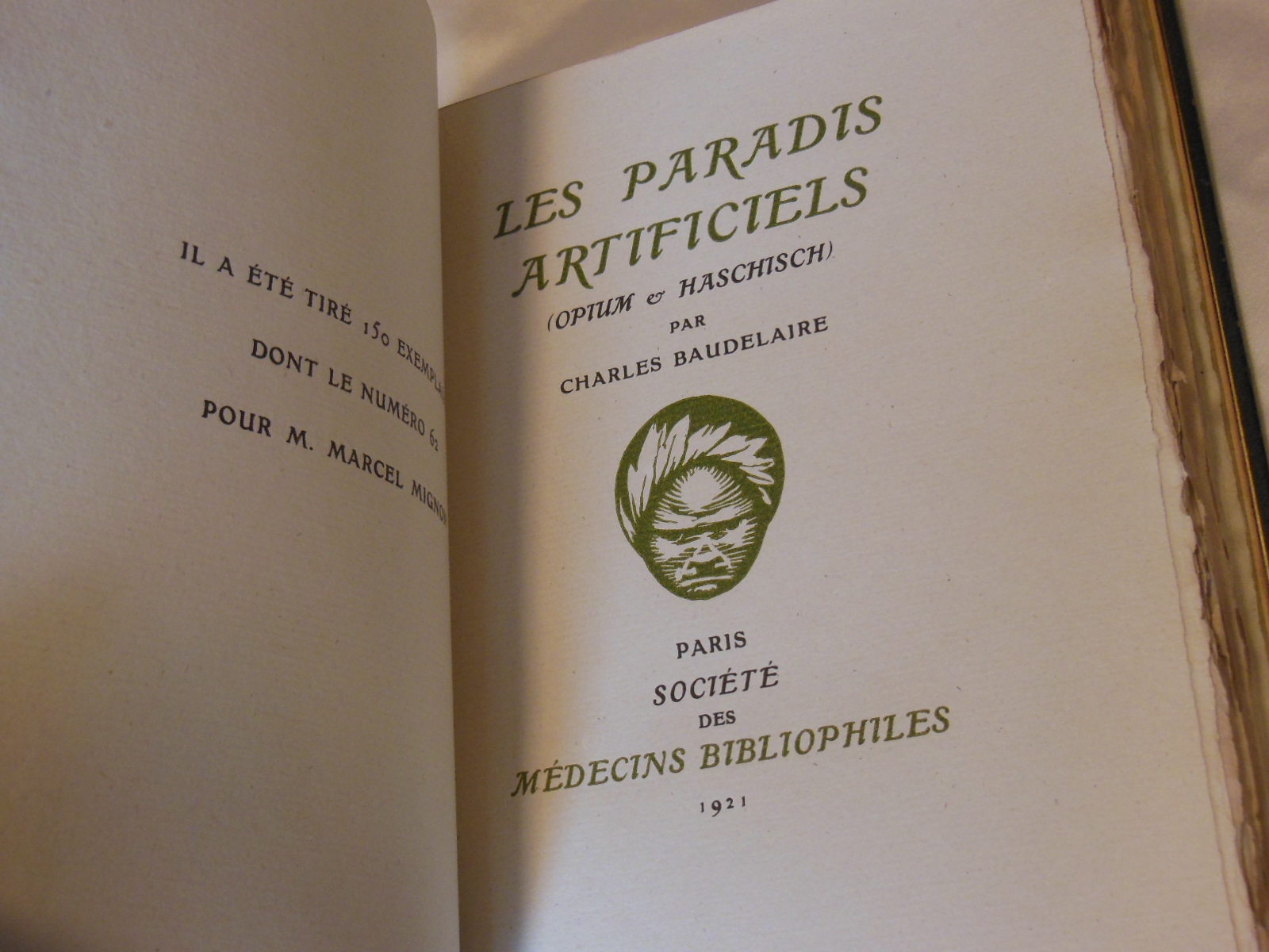 Hier das Exemplar Nr. 62/150 für Marcel Mignon auf Montval-Papier, einer Serie von zusätzlichen 22 Farbtafeln, darunter ein Portrait des Autors.